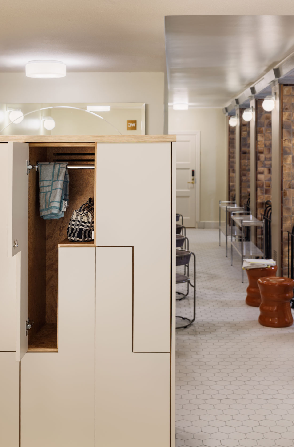 “We designed the lobbies, cool-off area, lounge and changing rooms with respect for the historical milieu, but with a modern spin. Interior architecture solutions, such as furniture plans, were made with reference to the past – every detail has been carefully considered and weighed,” says Lead Designer Johanna Happonen.