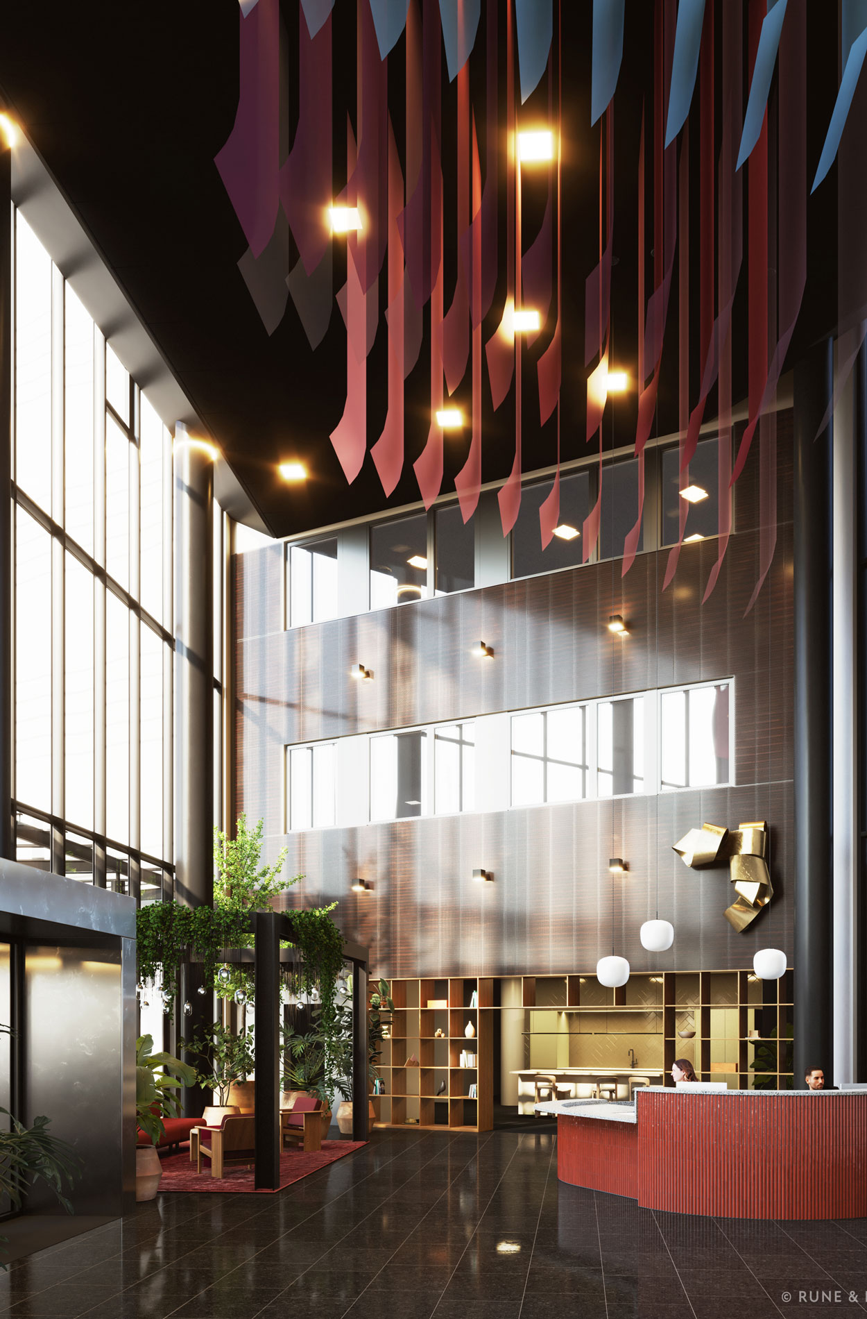 “Kiinteistön uusi logo ja sisustuksen muotokieli korostavat postmodernismia. Käänsimme 90-luvun peltibrutalismin ja tunnusomaisen punaisuuden Trioton voimavaraksi.” – Riikka Kuukka, Art Director, Rune & Berg Design